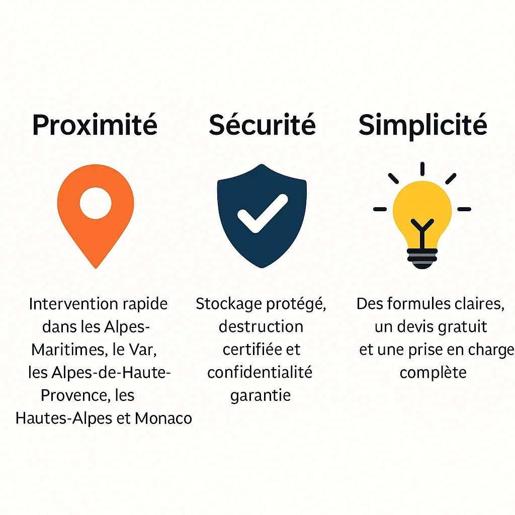 Notre mission : libérer vos espaces tout en garantissant confidentialité et conformité réglementaire.